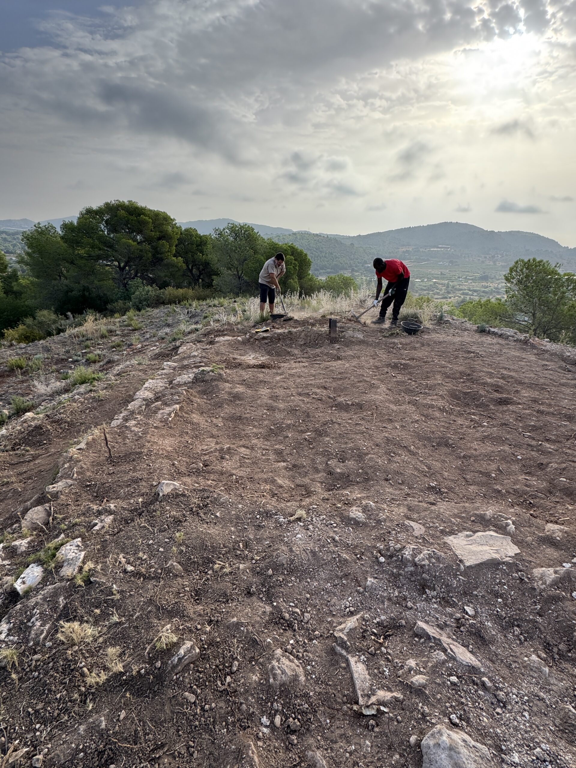 En 2025 hemos realizado la tercera fase en la excavación arqueológica y puesta en valor del Castell del Piló, en el municipio de Albalat dels Tarongers. Corresponde a un pequeño conjunto defensivo dentro de la red de pequeñas fortificaciones que controlaba el Castillo de Sagunto, sumándose a las de Beselga, Torres Torres y Segart. Este pequeño conjunto defensivo presenta los restos de muralla, pero es conocido como «El Piló» por los restos de un paramento correspondiente a una estancia al este del conjunto en forma de pico. Este pequeño montículo es parte de una estancia principal de la Cellequia, la cual fue excavada durante la campaña de 2024, sacando a la luz el interior de la misma y su estructura. Durante la primera campaña de 2025 intervenimos en la zona sur, la cual presenta una estancia anexa con abundantes restos cerámicos de gran contenedores, lo que nos indicaría una ocupación mas permanente. Durante la tercera fase hemos excavado una nueva estancia al norte de la estancia principal en la cual se ha mantenido en unas condiciones aceptables un pavimento de hormigón, un pasillo de acceso y una segunda estancia con un vano de paso a la estancia excavada. Un yacimiento que no deja de sorprender y que esperemos siga arrojando información de la historia del municipio.